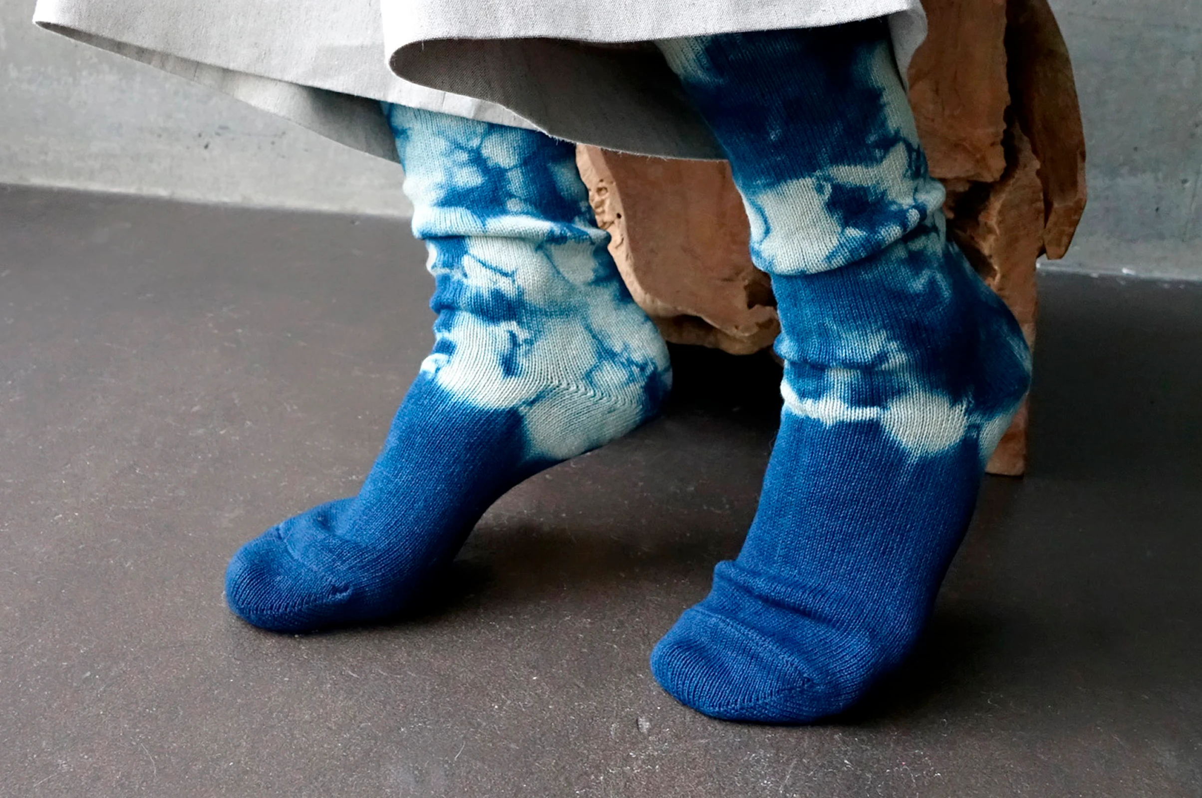 何度も染め重ねて生まれる模様や空気感は、どこか工芸品のよう。